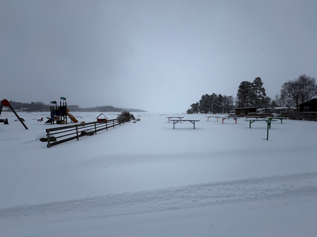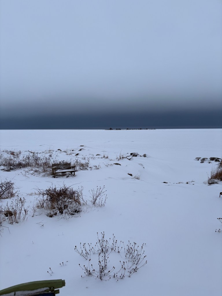 På udden drar vinterstormarna tillfälligt efter andan medan de uppbrutna isflaken långsamt glider söderut. Även om den även i år kändes som en överraskning kom den första vinterstormen när den brukar komma.