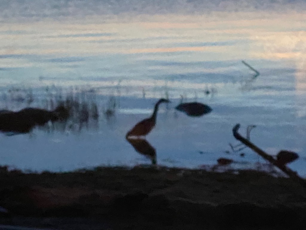 Han: Som om ingenting hänt – i morse (06:12) kom den ensamma hägern förbi och njöt av soluppgången …