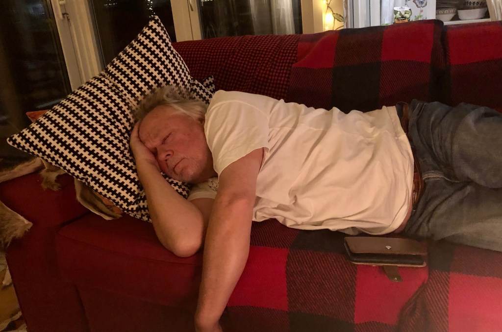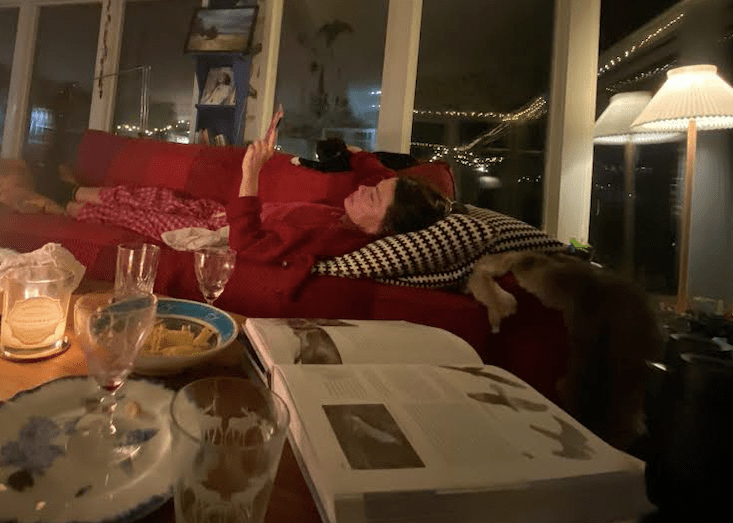 Hon: så värt strunta i packhelg i Stockholm och istället ligga i soffan vid havet och snörvla. Och med Ludde tätt intill, till skillnad från svarta sopsäckar och stora bagar från Claes Ohlson på Åsögatan…
