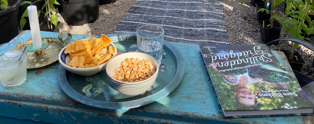 Just, vi var först i Ljungbyholm på Blomster & Trädgård och köpte lite olika bärbuskar, bl a vita björnbär. Och så ett par blåbärsbuskar, en hösthallon och några andra konstiga bär som Peppe absolut ville ha. För de var billiga, brukar ju inte han bry sig om… men de var tydligen nyttiga så ok 😉