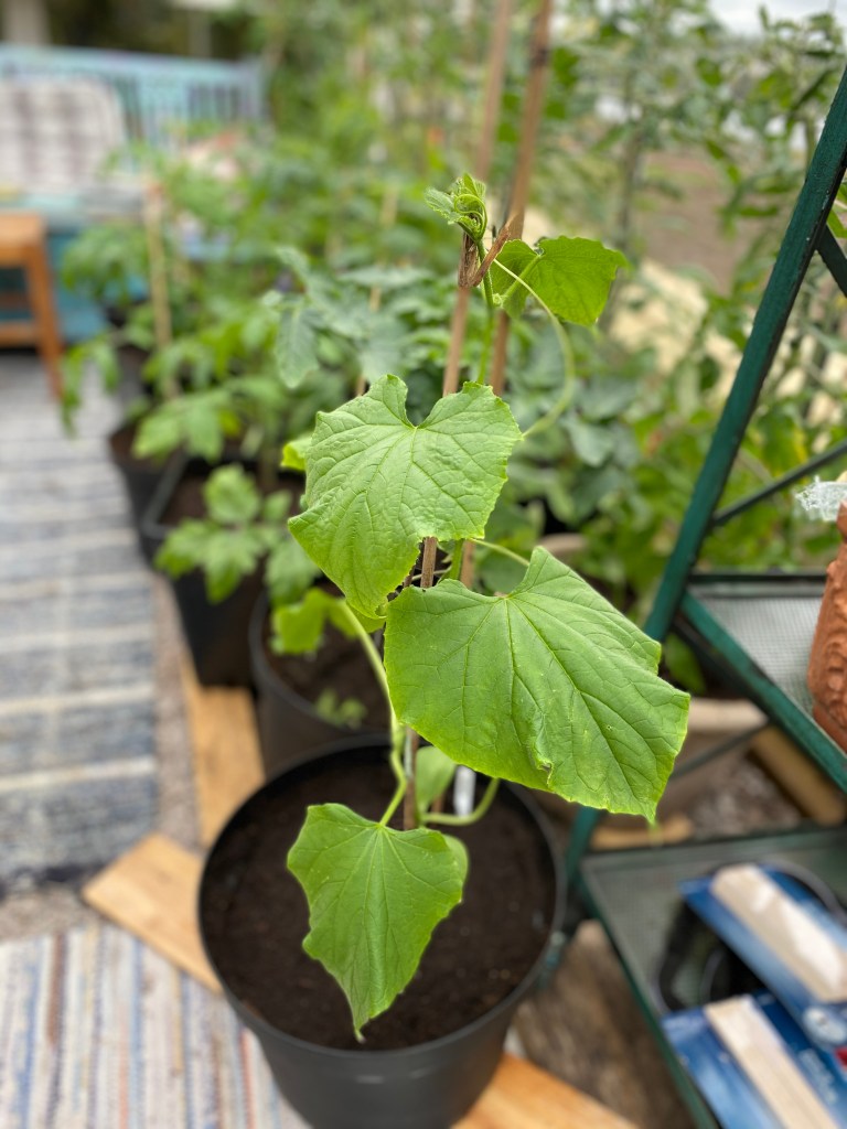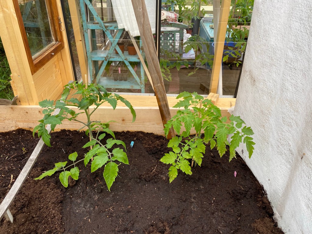 Hon: planterat om och planterar ut. Det är lite våghalsigt men eftersom de var fulla med gråsuggor kändes det som en god gärning. De kom undan. Men det ska inte gråsuggorna, nu är det fullskaligt krig. Det är alltså inte några under nån rostig kruka, det är miljarder överallt och mitt på gräsmattan också. Började i höstas, då började de gömma sig mellan tomaterna och deras fästen i stjälken. Men mest där det var väldigt trångt mellan bladen. Hur det ska gå i år undrar man ju… Brukar inte ha något emot gråsuggor, men detta är sjuuukt!!! Nu HATAR jag dem!!!
