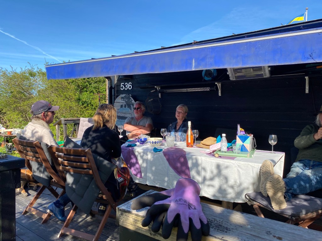 Men det visade sig vara ett litet problem. När jag började vattna chilin inne i lugn och ro, alla andra sov, såg jag att det kryllade av bladlöss. Panik!!! Ut med de värst drabbade, fram med artilleriet, Neemolja och såpa i mängd. Har gått igenom alla plantor, typ 200 stycken, tagit hela dagen. Från halv sju till drinkgästerna kom vid fyrasnåret. Fick bli grillchips från kiosken som tilltugg, och sen spontan middag på det som fanns i kylen. Blev ändå en himla bra fredag 🙂