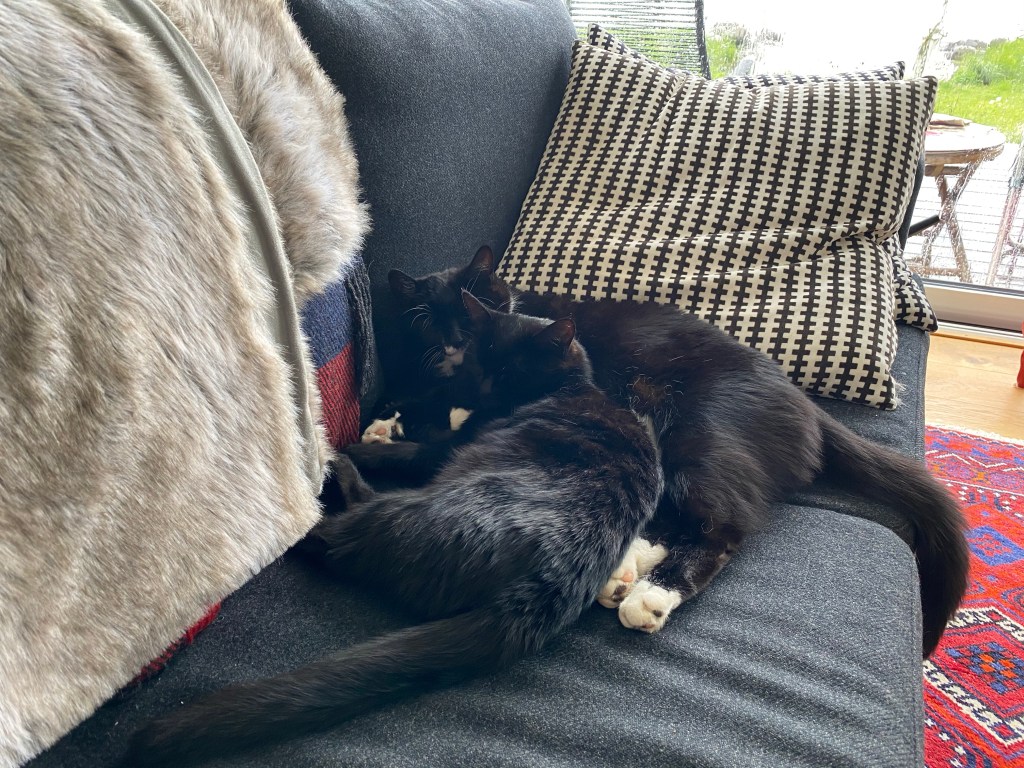 Hon: inte ens Vilda och Ludde vill gå ut. Annars har de övergått till summer mood, man ser dem knappt över huvudtaget. Inte Vilda i alla fall. Ludde är väl lite mer av en ”hemmakatt”. Han ligger i en gräsgrop under björken typ hela dagen. Vacklar fram vid drink-snåret och vill bli klappad. Vilda är på okända äventyr från tidig morgon till sen kväll, möjligtvis är hon och friar hos nykomlingen i området, Nisse. En väldigt ung hanne, men storväxt och stilig av rasen Maine Coon. Ja lite lik Måns faktiskt. Nä Vilda, håll dig till Ludde.