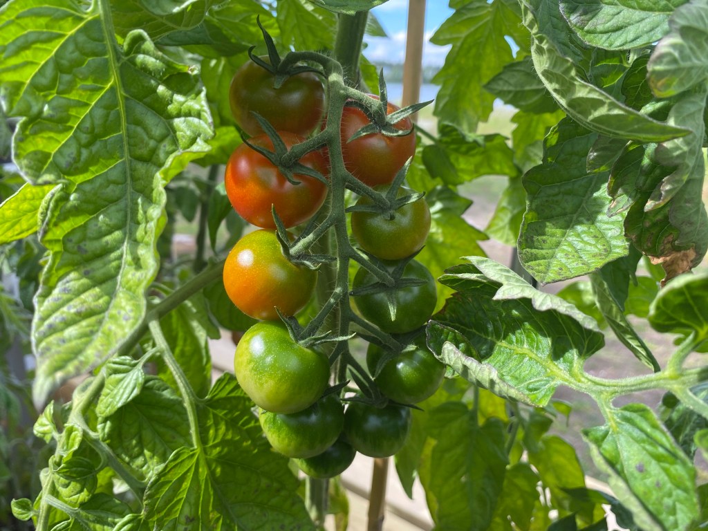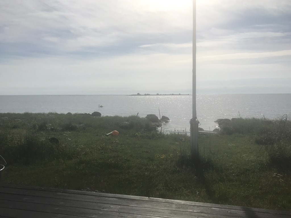 Hon: men efter frukost har det faktiskt blåst upp Peppe. Och jag har klippt gräset (runt alla fina blommor förstås) men utsikten är blåsigare nu om än mer välvårdad. Orkar tyvärr inte gå runt till sjösidan och ta en ny bild på den blåsigare men mer välvårdade utsikten. Sitter i lä på baksidan. Farligt att sätta sig, skulle ha planterat ut en tomat till samt kollat till gurkorna som är utplanterade på friland. Orkar nog inte det heller… Gurkorna går det för övrigt inte så bra med i år. Trodde bara det var mina men så berättade Ancy att hon läst att det är ett dåligt gurkor i år över lag. Pust! Men de börjar i alla fall komma lite smått. Tomater är vi redan självförsörjande på, men man kan inte slösa, blir ett par var till frukost och kanske några i en sallad. Men de är tusen gånger godare så man får liksom ändå mer smak totalt sett. Vi ska göra en topplista sen, har många sorter i år.