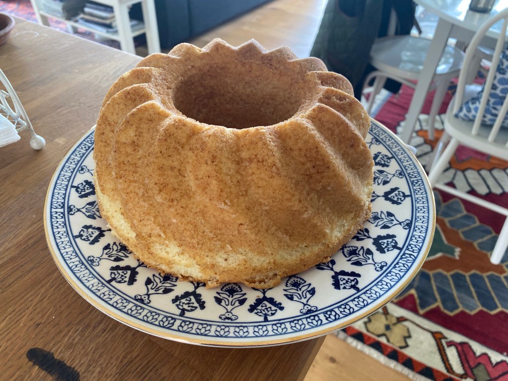 Och så ”slängde jag ihop” en sockerkaka, ha ha. Nytt recept. Kör nästan alltid Fin sockerkaka ur 7 sorters kakor. Men den har inte funkat 100 i nya ugnen. Denna ser fin ut, frågan är hur den smakar… skulle vara saftig, men det var inte mycket smör i…