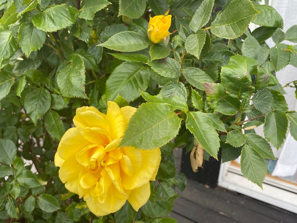 Och så har rosorna börjat blomma. Först ut är vår fina gula på sjösidan. Vet inte vad den heter. Flera andra på g också men inte helt utslagna. Verkar bli ännu ett rosår.