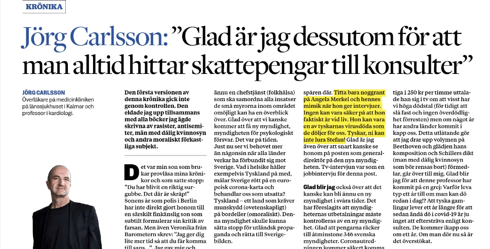 Så inleder Jörg Carsson en krönika i Barometern. Carlsson är överläkare på medicinkliniken på länssjukhuset i Kalmar och professor i kardiologi