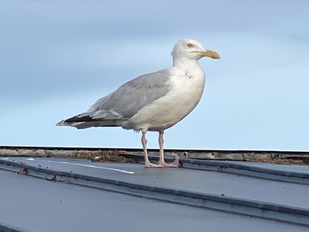 Sen åkte vi hem. När vi kom satte vi oss på vårt soldäck på sjösidan för att prata om allt intressant som hänt under dagen. Plötsligt sitter det en trut på taket och tittar konstigt på mig.