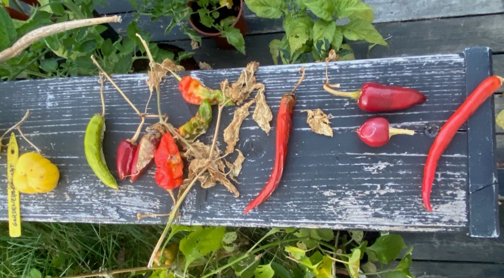 Hon, dennadär, är inte längre hobbyodlare – hon är jordbrukare och nu är skördetid. Finns alltid en ledsen tomatplanta som behöver handpåläggning. Dessutom skapar hon konst, förmodligen utan att vara medveten om det.