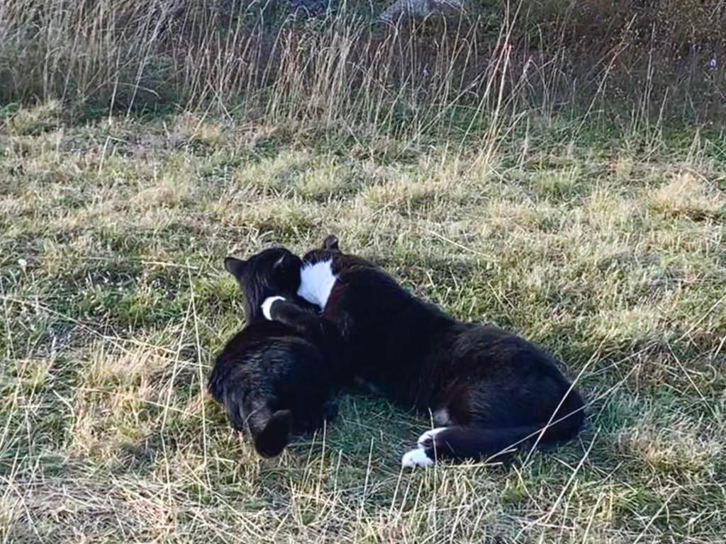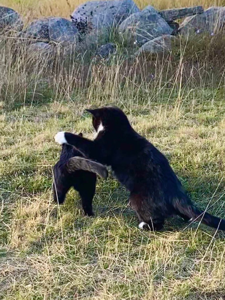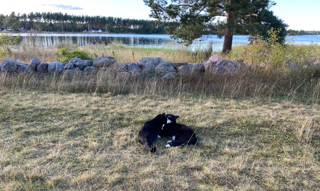 Kokat ketchup och marmelad hela dan, vet inte vem som ska äta upp allt bara… nä, nu vill jag koncentrera mig på chili och björnbär, och kanske hinna ut och leta lite svamp. I alla fall inte stå inne när solen väl tittar fram. Blev i alla fall en solig kvällsdrink på Chateau Margaretas altan i väster. Kissarna hade pusskalas som övergick i kärleksgnabb…