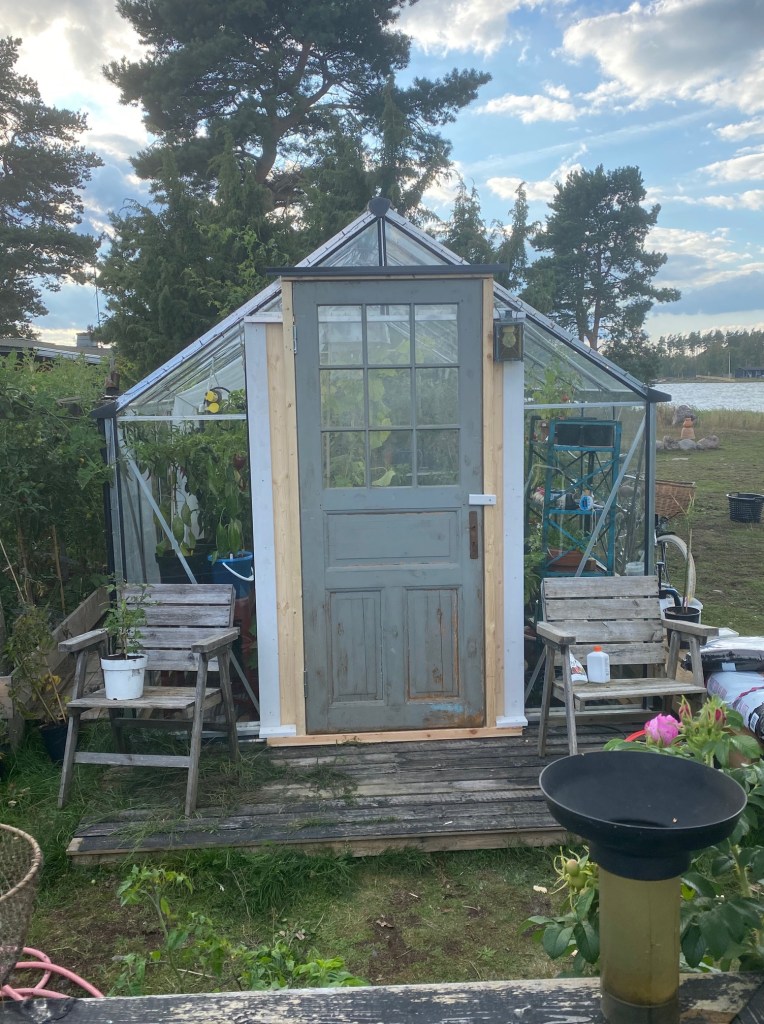 Jag blev hyfsad klar med dörren till växthuset (tack Jocke B för att du hittade den i ditt förråd i Skruv!)…