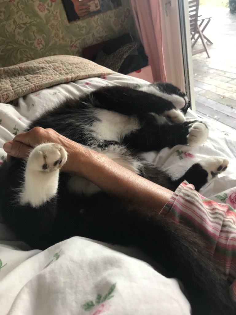 Hon: slutvaktat för den här säsongen, nu är det fasta rutiner igen. Inomhus. På morgonen börjar vi med kel, minst en halvtimme, sluta inte klappa matte!