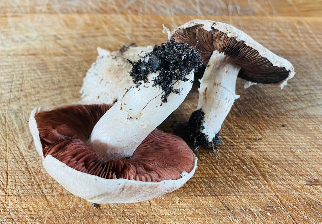 Nix, Staffan kom just klädd i joggingstass. Och Magdalena vill ta en promenad. Det blir bra, kan vi kolla efter lite mer svamp, vilket jag inte brukar hitta… men igår stod det helt plötsligt tre champinjoner mellan husen. Så ett par till skulle sitta fint!