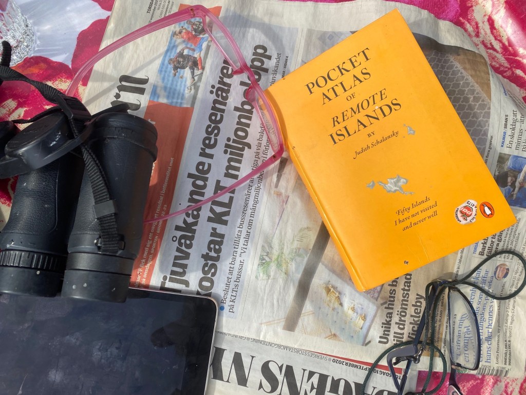 Jag har en annan infallsvinkel. Jag skrev om Judith Schalanskys kartbok i en dagsnotering för några år sedan, före coronan. Jag hade redan då noterat det blir allt vanligare att romaner utspelas på isolerade öar. Sedan dess har jag läst flera böcker om män som hamnar på öde öar. Även min kompis, T, har en roman om en man på en öde ö i byrålådan.