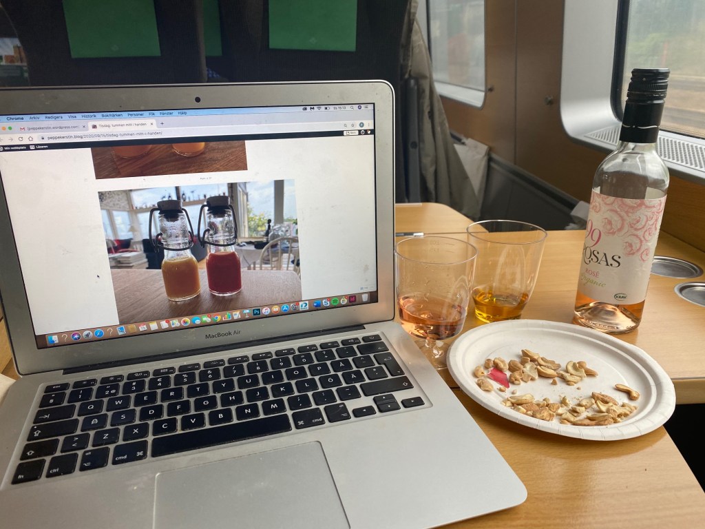 Har besökt restaurangvagnen (såg fel på klockan så det blev en tidig 5’o-clock drink) och ser fram emot ytterligare 4 timmar innan jag når staden jag föddes i.