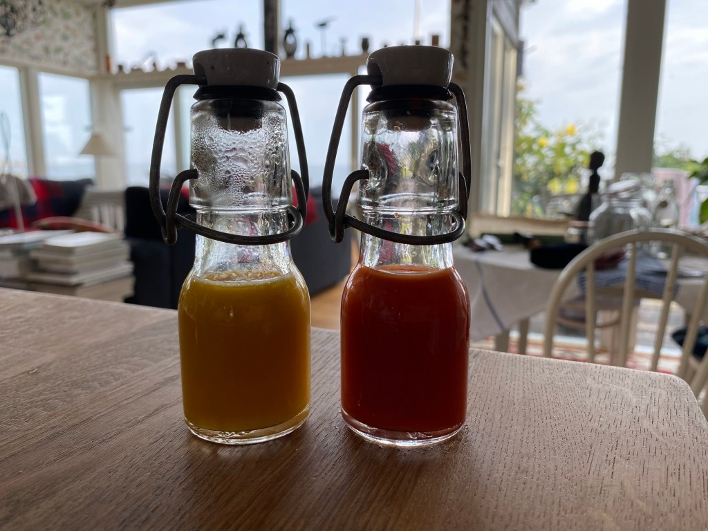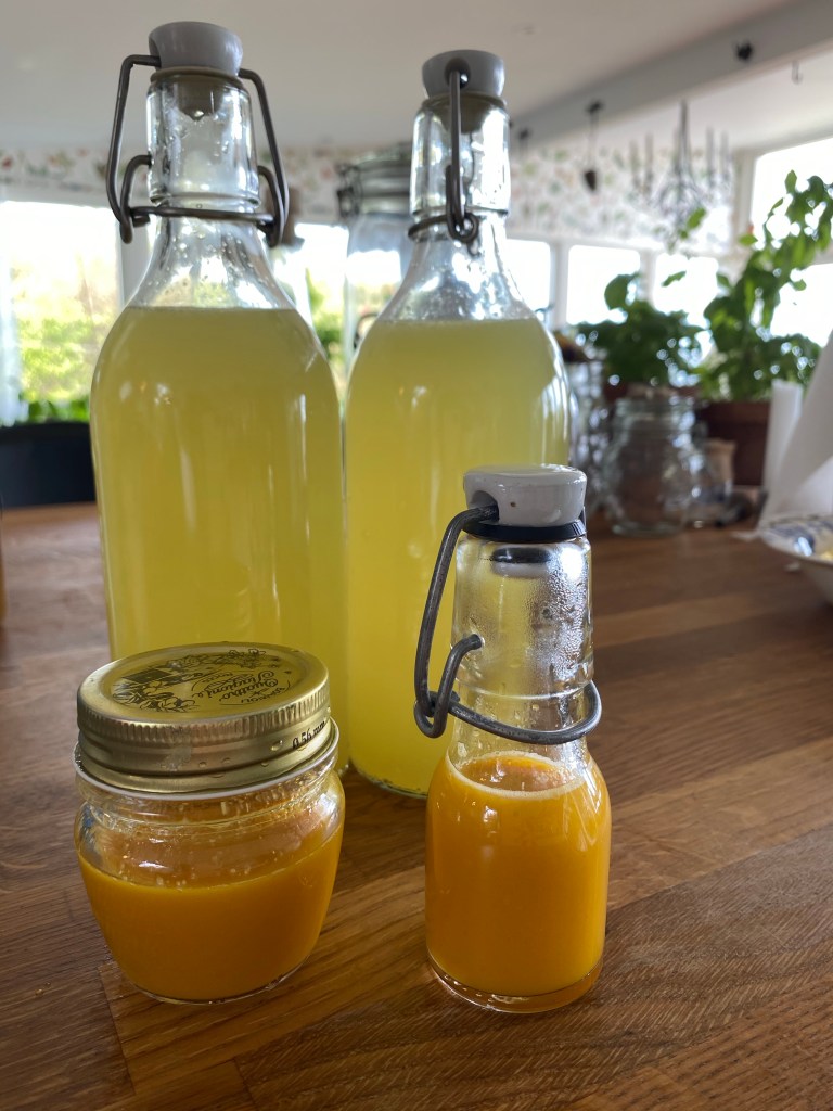 Och så var det limoncellon som behöver silas av och hällas på flaska, likaså den gula färdigfermenterade såsen vilken också ska kokas ihop med vinäger.