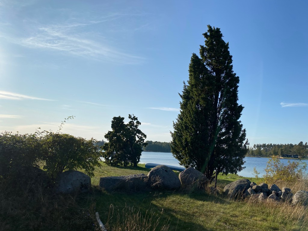 Vår fina björk fick också rejäl beskärning idag så de sista tomaterna får lite mer sol nu och kan mogna utan att ruttna. Efter detta tuffa jobb blev det drink i kvällssolen på Chateau Margaretas veranda. Med utsikt över de fina gamla enarna som funnits med så länge jag funnits, länge alltså… För övrigt så fortfarande väldigt glad över att han är hemma igen.