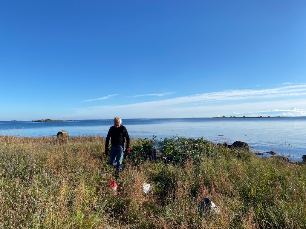 Hon: men du missade ju när jag dök i, med huvudet före… skulle alltså simmat ut en gång til!! Det var faktiskt skönare än det kändes när jag bara stod med fötterna i därinne och tog upp tång. Det var kallt. Så jag tänkte inte ens tanken att doppa mig två gånger. Dumt! Och frågan är om det blir fler sådana här sköna, varma dagar så man känner för att bada trots max 14 grader.