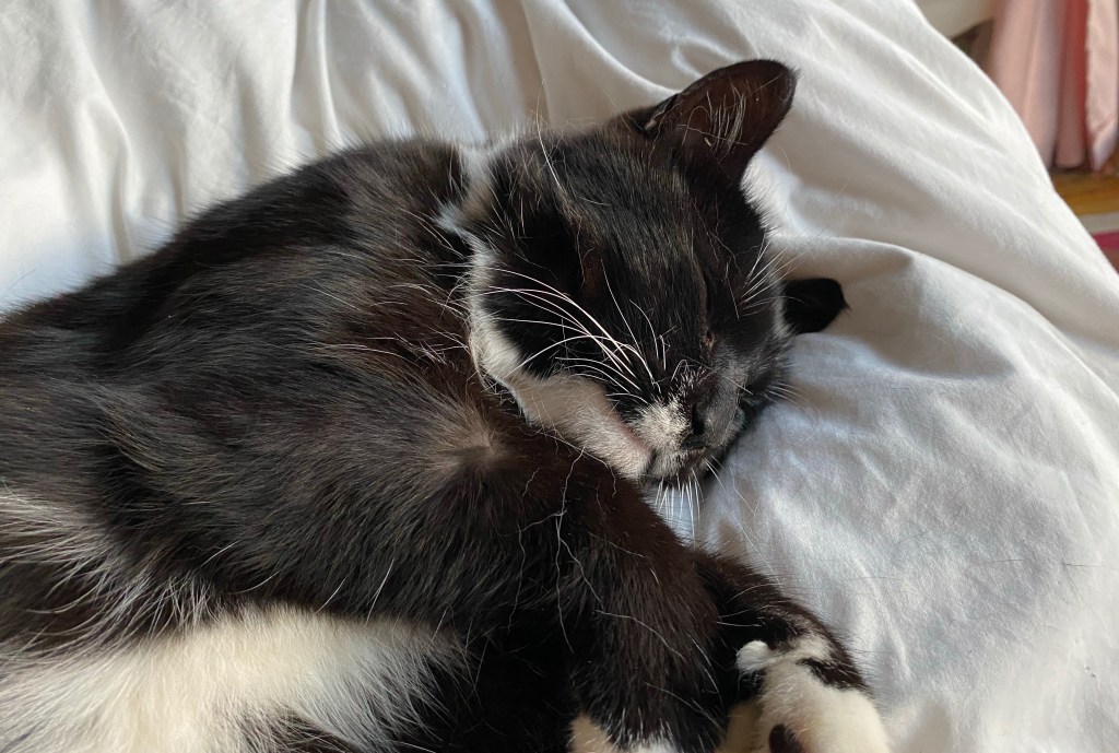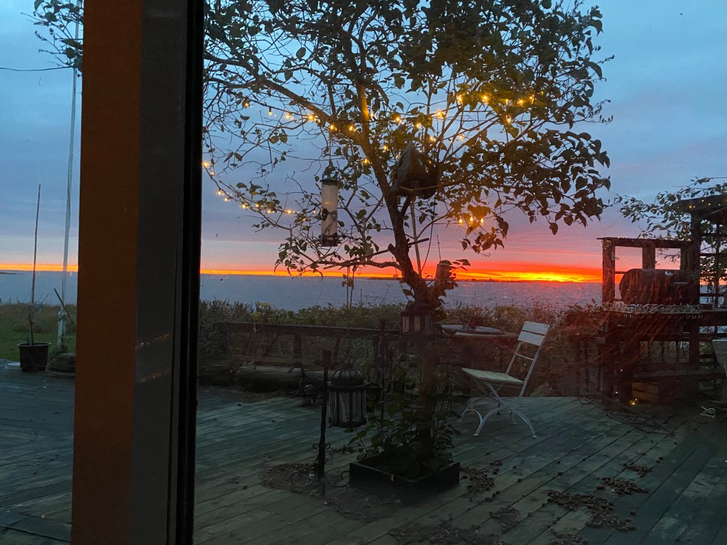 Hon: och inifrån Hus 1 och vårt sovrum var det också ett magiskt uppvaknande. Ludde tyckte det var helt onödigt att gå upp eller vara delaktig i arbetet i det andra huset. Matte höll med!