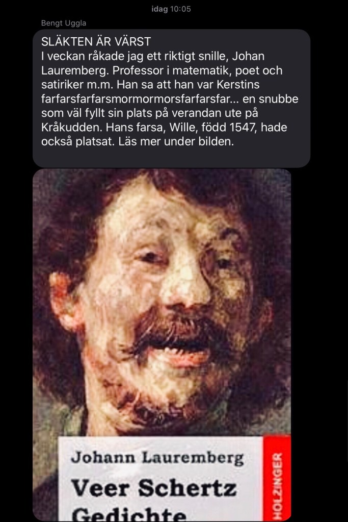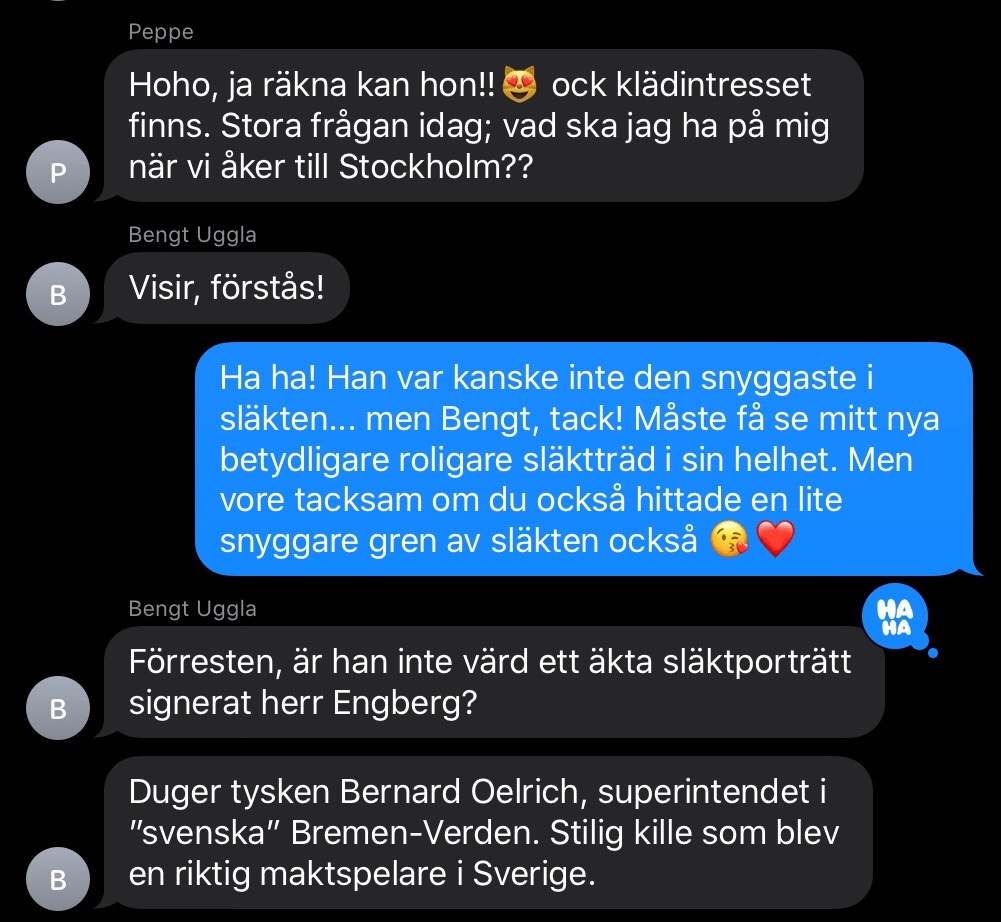 Hon: trött, vaknade alldeles för tidigt och har packat och fixat inför ett kort Stockholmsbesök hela dagen, så jag kommer lämna över ordet till vår kompis Bengt och vår SMS-grupp från imorse. Bengt är lika hooked på valet och CNN som Peppe, men har ändå hunnit forska lite vidare i min märkliga släkt. Vet inte om jag vågar tro på det men är hur som helst glad han hittade en lite snyggare anfader också 😉