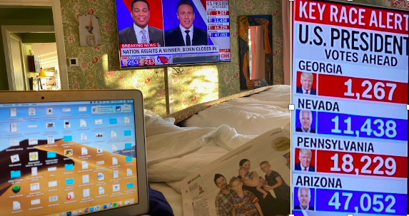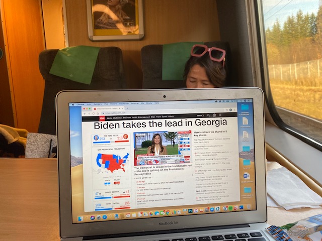 Han, igen: Allt har hänt, ingenting har förändrats. Vi har landat i huvudstaden, men jag är kvar i Chicago där Biden takes the lead in PA och ännu är ingenting klart.