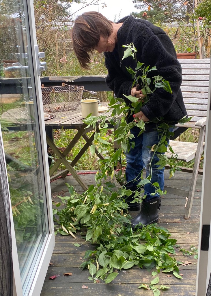 Förutom en kort skogspromenad till vårt svampställe har dagen mest gått till att klippa ner chiliplantorna inomhus (invaderade av löss medan vi var borta…) och skördat de sista chilisarna i växthusen. Sov till halv tio, då var Peppe så orolig att han väckte mig, så dagen blev kort. Besök i Stockholm tar uppenbarligen på krafterna…