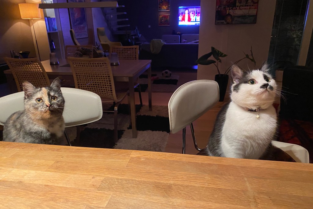 Bra bild kom också per sms från grannhuset alldeles nyss. Elsa och Rut sitter i baren och är missnöjda på servicen hälsar matte Ancy…