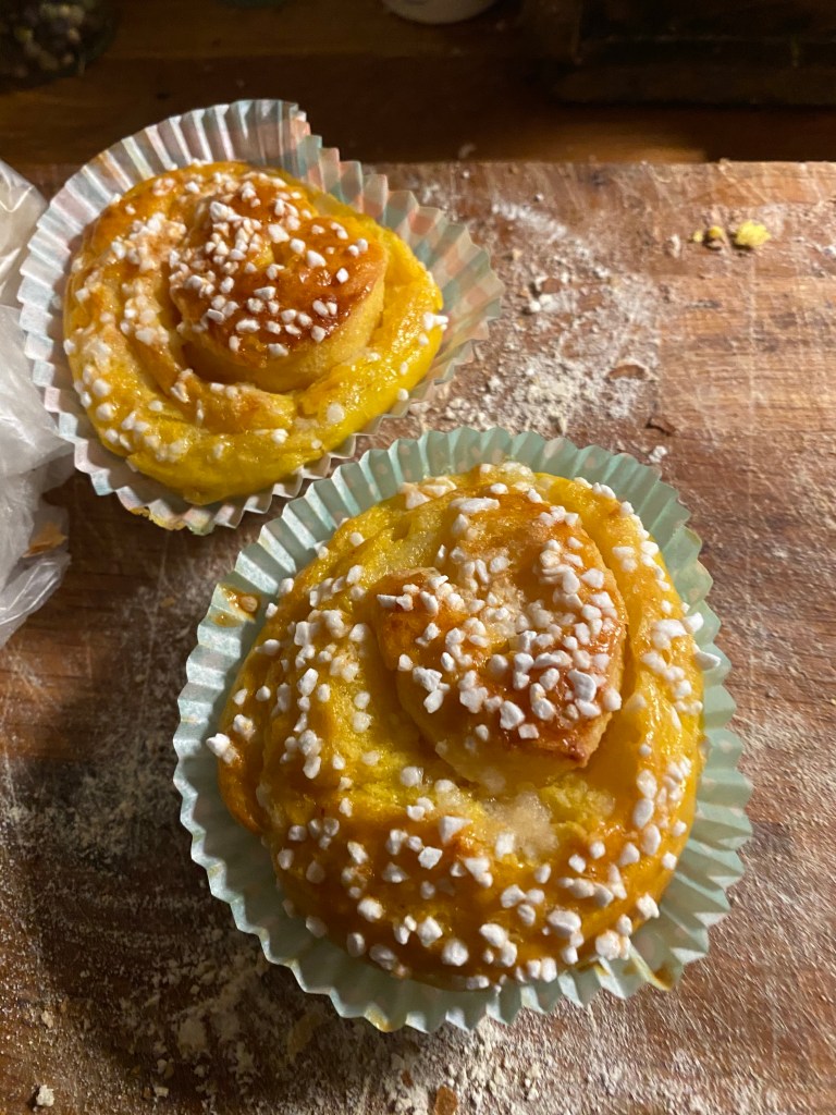 PS: Om jag verkar uppspelt så beror det på att jag fått provsmaka på hennes saffransbullar. Generös som jag är hade jag tänkt avslöja receptet, men så givmild är inte bagaren.