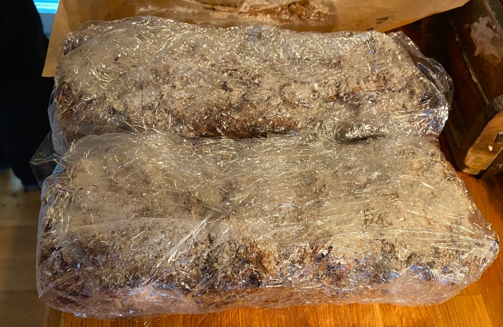 Just, också satt pepparkaksdegen. Den ligger till sig i kylen nu. Minst ett dygn, helst mer. Blir nog bak på fredag eller lördag. Hoppas den blev bra trots att jag glömde sockret… men som tur var slickade jag av fingrarna efter att ha knådat ihop den, tyckte kryddningen satt, men brukar den verkligen inte vara lite sötare, tänkte jag. Just fasen, har nog glömt sockret som ska i grädd- och sirapsblandningen, innan mjölet… äsch, knådade i det efteråt. Tre deciliter… facit kommer i slutet av veckan.
