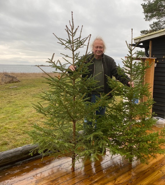 Han: Det började bra och sedan hände inte så mycket mer den här dan. Hon krävde den obligatoriska bilden på far och hans julgranar och han försökte se ut som om han huggit dem själv som far hennes alltid gjorde och sedan levde de lyckliga i alla sina dagar på sin udde.