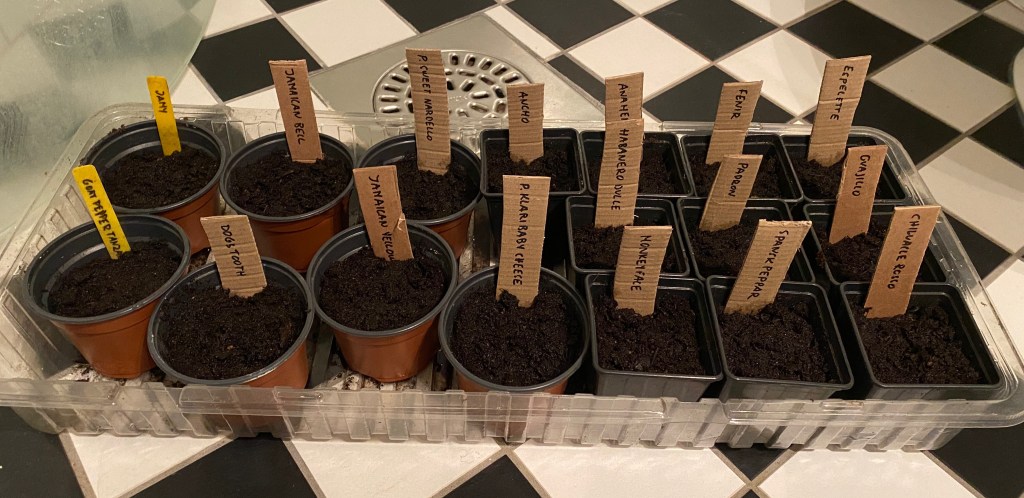 Har också planterat om en del av de chilisorterna jag satte för någon månad sedan. Nu står de i varsin kruka.