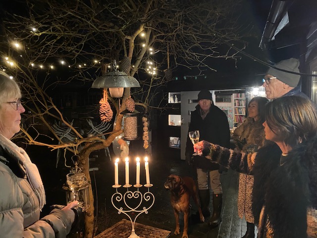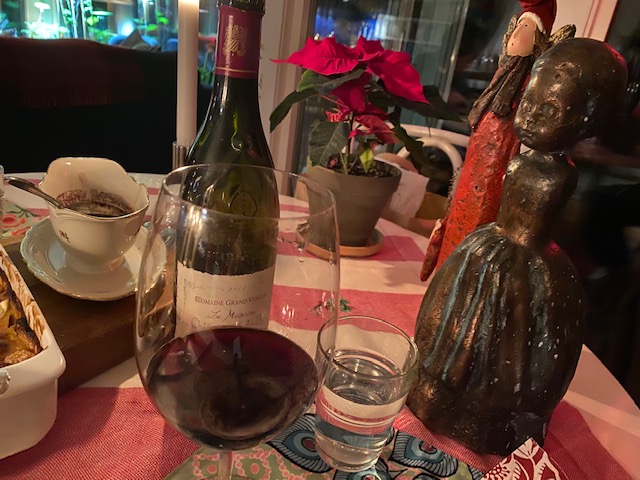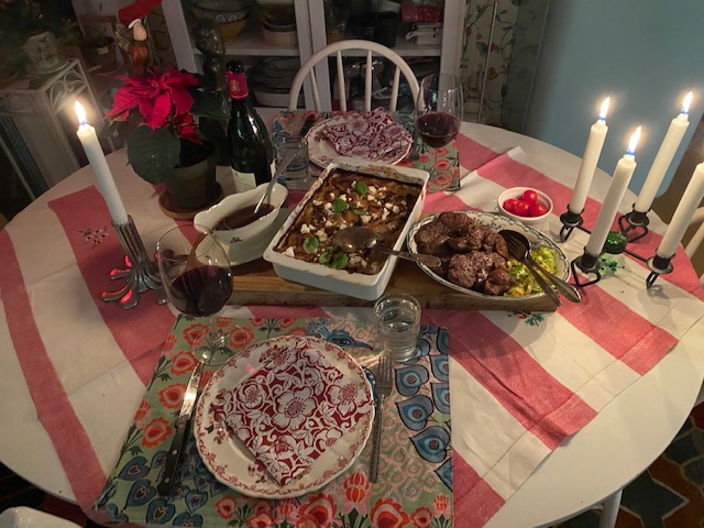 Han: Om nyårsafton började med en utomhusdrink hos Isman (trevligt folk, de börjar fira nyår enligt Samoatid), Lindbergs fyrverkerier och supé för två och en oxfilé från och slutade med en kylig men coronasäkrad skål med goda vänner på udden, så både började och slutade den korta nyårsnatten med bal för 2 i upplyst hus.