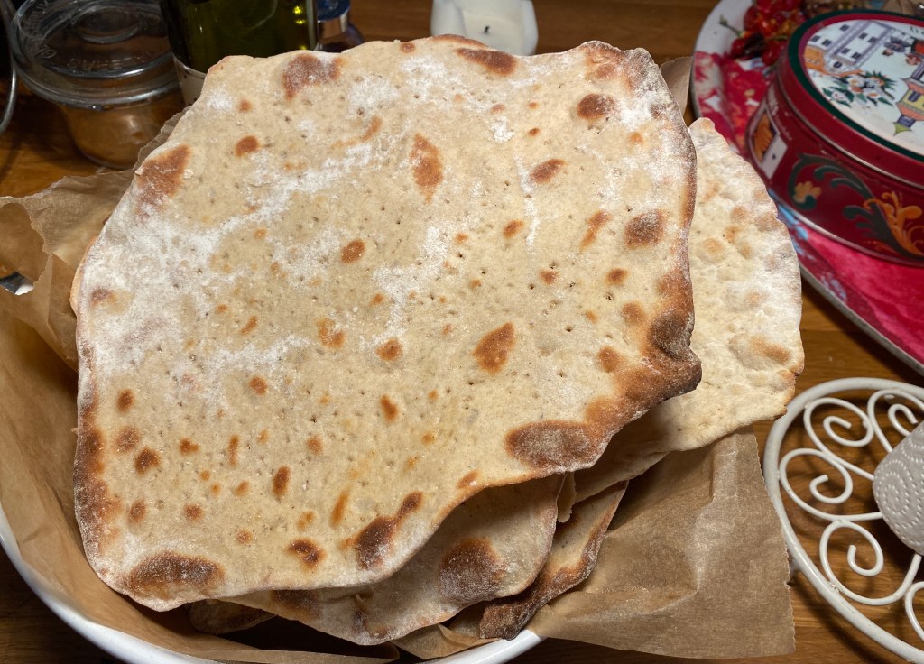 Nu ett glas gott italienskt rödvin, en Nebbiolo, innan jag kokar pastan och gör salvia- och smörsåsen. Lägger upp en bild på tunnbröden jag gjorde i går kväll också, lite snyggare än raviolin…