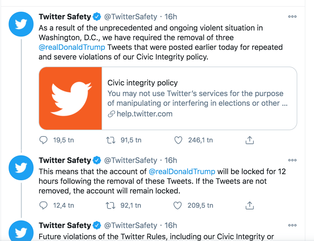 PS: Nu går det fort. Media beskriver inte bara verkligheten. När Facebook, Instagram och Twitter nu i kväll meddelar att man stänger ner Donald Trumps konton formar media även verkligheten.