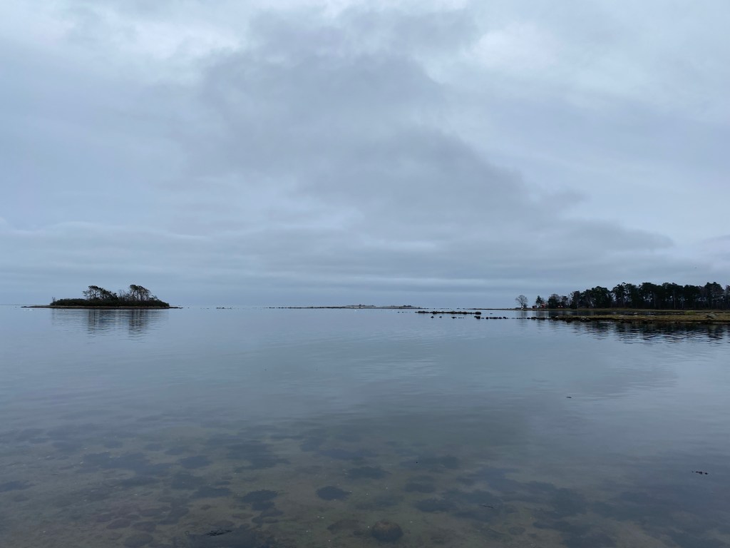 Lördagar går vi på långpromenad, har jag bestämt, han är måttligt road men följer i alla fall med. Det blev t.o.m en liten extra tur ut på ön med grillplatsen. Såååå fint därute, man ser både Garpen och Fimpan. Och svanar i mängd.