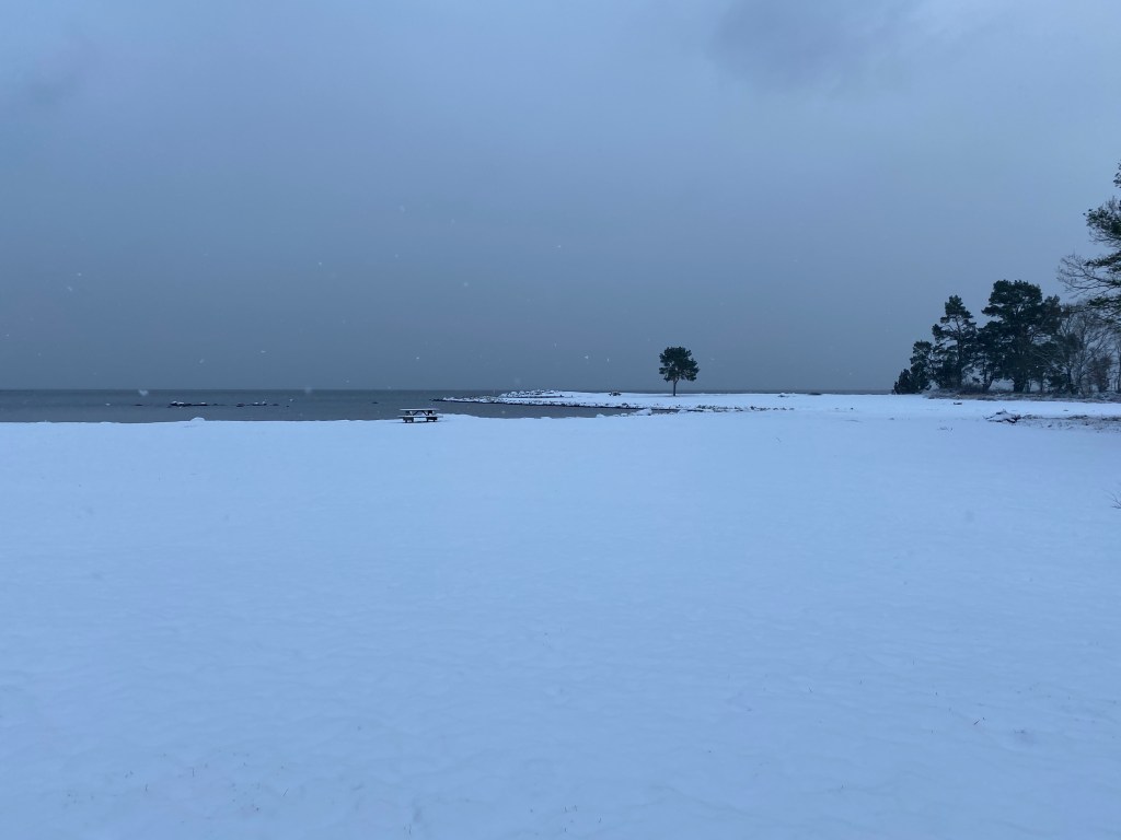 Promenad i vinterlandskap, fyllt 12 krukor med jord inne i Chateau Margaretas växthus som jag burit in hit för att värmas upp inför morgondagens omplanteringar.
