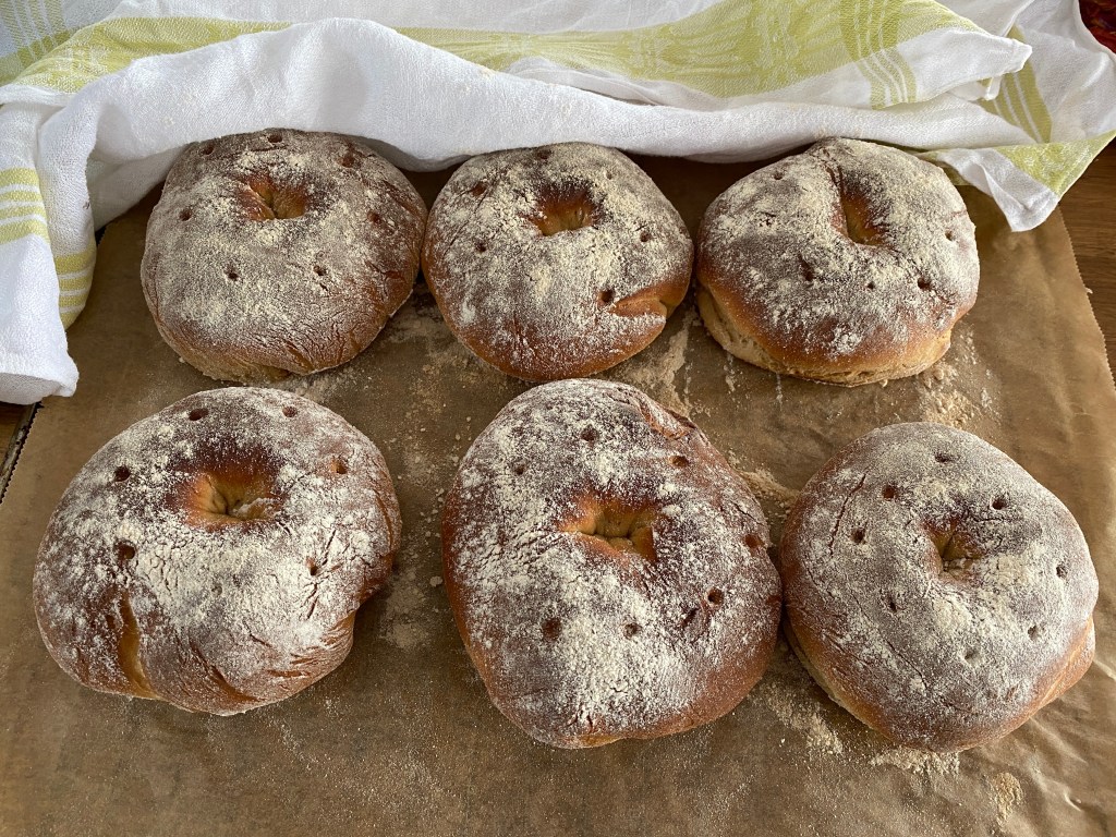 Kall morgon, ont om fåglar att räkna. Maten i deras mat-träd var djupfryst. Lägger ut lite nya frön på marken. Bestämmer mig för att baka bröd. Fastnar för ett recept på rågkusar. Smakade av nyss, goda trots att hålet i mitten krympte ihop till nada…