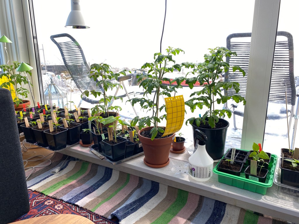 Det är en Red Robin, en slags dvärgtomat. Ska bara bli 25 cm hög och väldigt kompakt. Mina är lite högre på grund av för lite ljus, trots extra växtbelysning. Men de är ändå hyggligt kraftiga och kompakta. Klart hanterbara att ha inne. De som ska ut i växthuset och på friland har jag inte börjat sätta än.