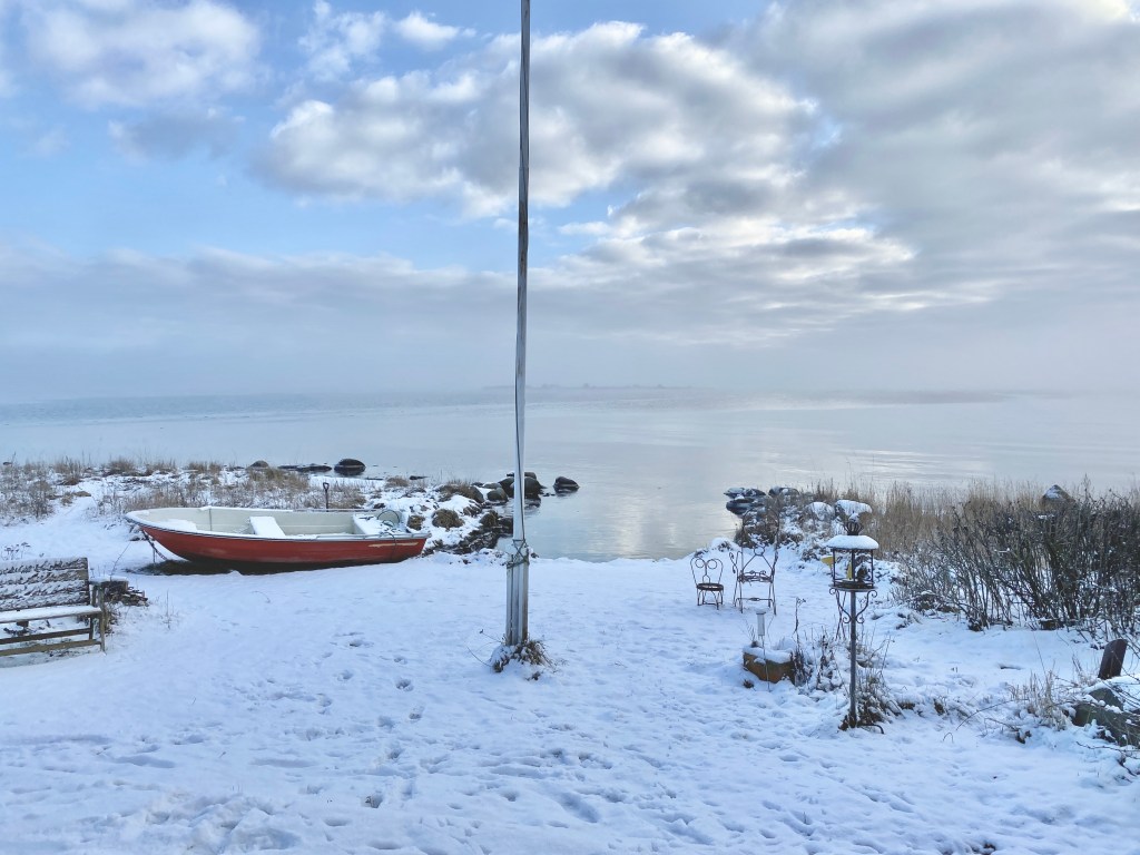 Ute går det i vitt idag. Dimma ligger över havet som nästan har börjat frysa till is även här ute hos oss på udden. Men en vindpust och den spricker upp igen. För öppet och blåsigt, fast håller kylan i sig så kanske vi kan ta en promenad ut till Fimpan nästa helg. Vore ju himla kul, var säkert sådär 40 år sedan det gick senast skulle jag tro. Men jag minns en vinter när de till och med körde bil över till Öland, och jag åkte skridsko på en fin blankis utanför Fimpan. Men det måste vara typ 50 år sedan… huh!