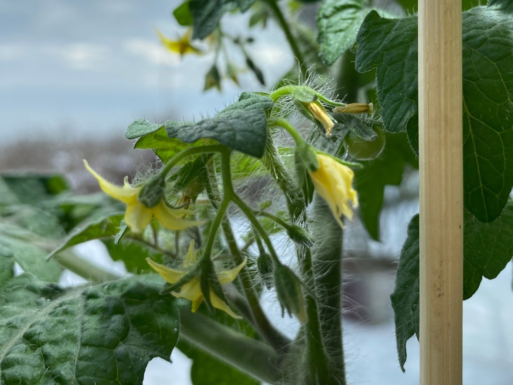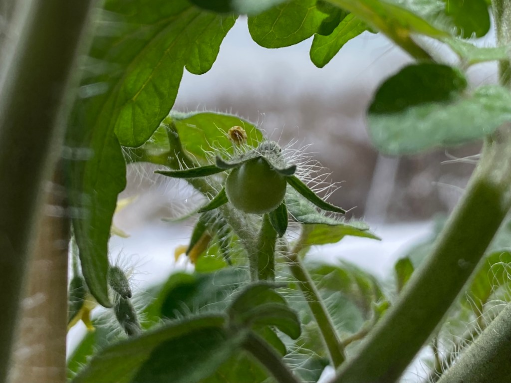 Hon: japp, första tomaten är här! Såååå kul! Den är pytte alltså, och kommer inte bli så stor överhuvudtaget, men ändå. 31:a januari!