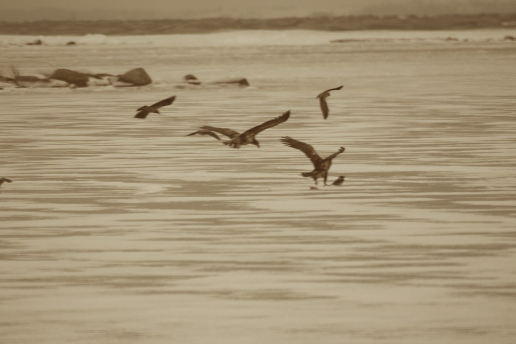 Och i nästa ögonblick kommer uddens gamar – tre stora havsörnar flyger in över huvudet på mig och slår sig ner ett tiotal meter från svanungen. Liksom gamar är örnen lat, dessutom är den en vulgär gormand, asätare.