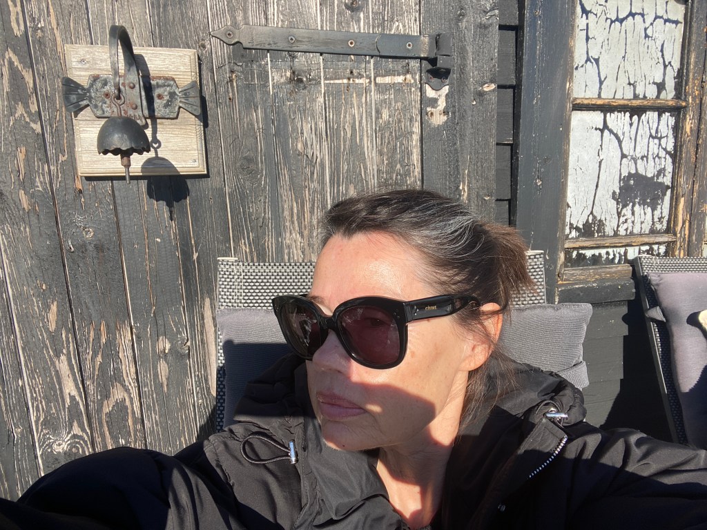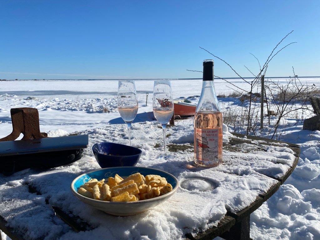 Hon: gav upp, ”men ta med snusen ut då också…” ja, jag har blivit som när jag trodde jag kunde feströka. Tanken på en snus här i solen gjorde biffen. Men rökt har jag inte gjort på snart tio år, inte ett enda bloss!!! Inte ens sugen längre. Men glaset med rosé ser riktigt gott ut. Tacka för det iof, Han tog ut mina fina champagneglas Merlot. Tror bara vi har två kvar nu 😉