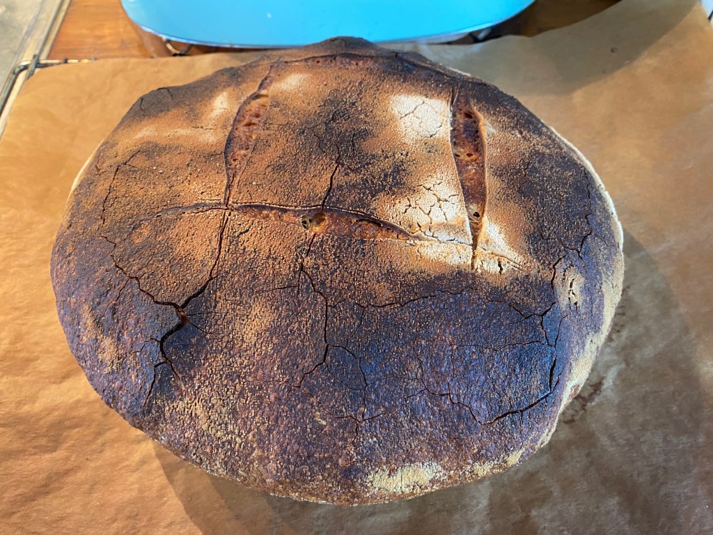 Ja, det är lite bränt, men det ska det tydligen vara, enligt sådana som kan. Och enligt dem är inte det brända farligt när man bakar på surdeg. Låter ju lite konstigt, men en kant som är aningen bränd tillför faktiskt väldigt god smak.