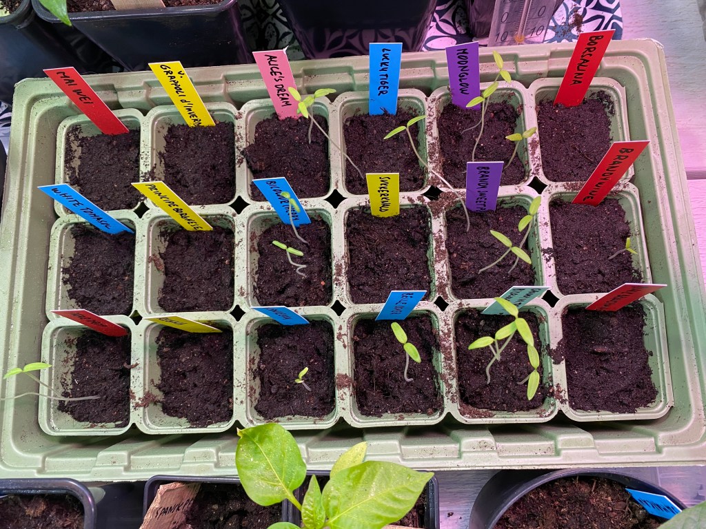 Hon: planterade inte om några tomater alls idag faktiskt. Och de jag satte senast har kommit upp väldigt ojämnt så jag fick ta ut dem från den varma golvvärmen i badrummet, som är bra när de ska gro, men för varmt och för mörkt när de väl har tittat upp. Några kom upp typ direkt och har blivit väldigt långa och gängliga. Andra har inte kommit upp alls och nu är jag orolig att de har det för kallt framför fönstret eftersom jag stängt av golvvärmen… Och dumt nog sitter pluggbrätterna ihop så jag kan inte sära på dem.