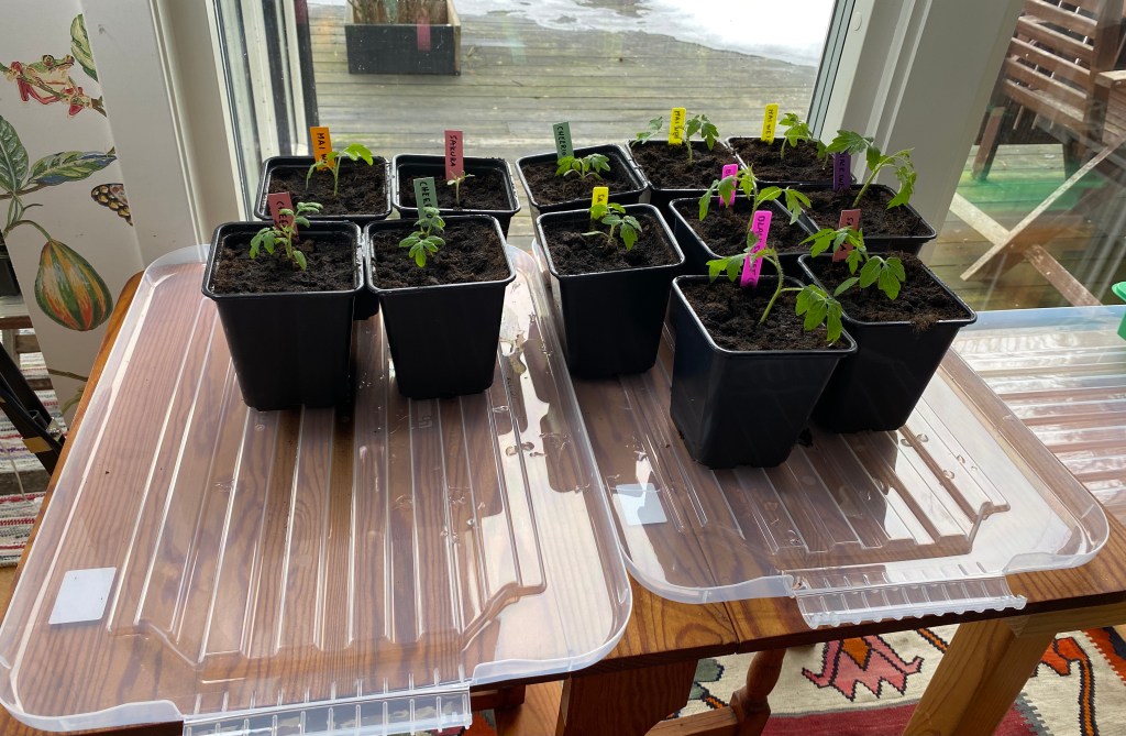 Och kunde äntligen stå ute i växthus 1 och plantera om tomater och lökar. Underbart! Var 10 grader därinne och varken jag eller plantorna behövde förfrysas.