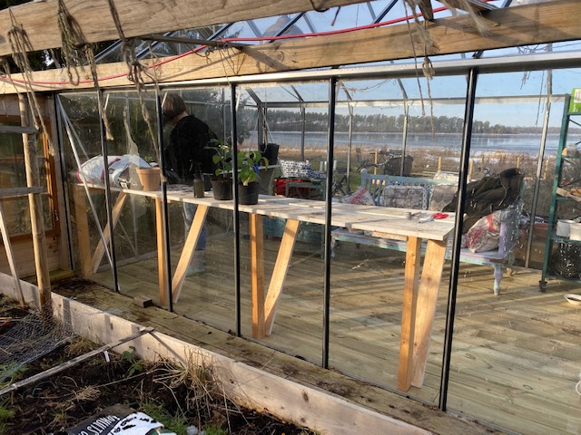 Kanske ska måla det med en mörkbrun träolja, smuts och jord syns sämre och så suger det åt sig solens strålar bättre, och förhoppningsvis behåller värmen efter solnedgången lite längre.