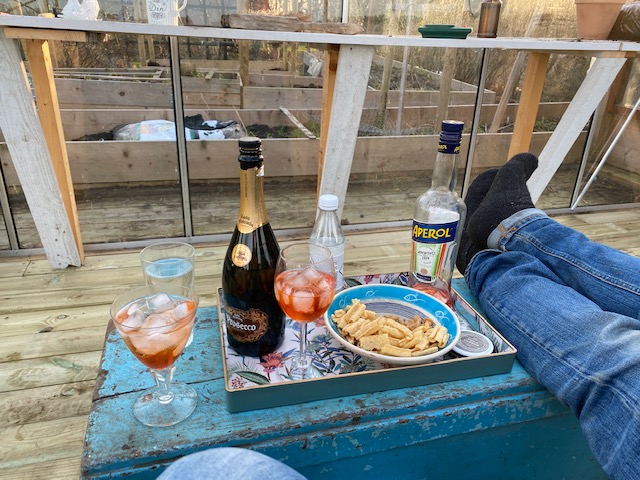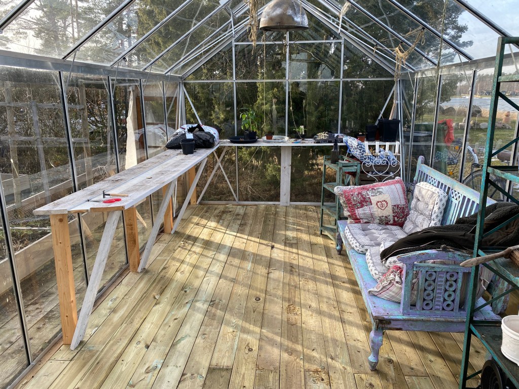 Och jo, hon blev glad och sedan firade vi arbetets seger över naturen med årets första Aperol Spritz i dito växthus. Men nån dans blev det inte.