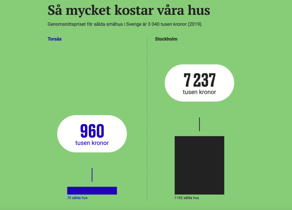 – Å andra sidan kostar det bara 960 000 kr att köpa en genomsnittlig kåk här i kommunen, jämfört med 7,3 miljoner i Stockholm.