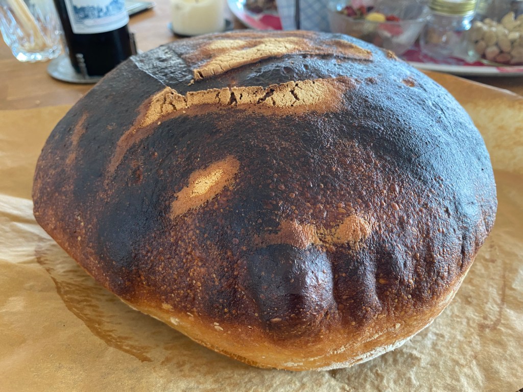 Och så dagens surdegsbröd, ett ljust på lite olika sorters vetemjöl (dinkel, manitoba m fl), men med rågsurdegsgrund. Blev väldigt gott, men med en stor luftbubbla under skorpan. Inget blir det andra likt, alltid lika spännande.