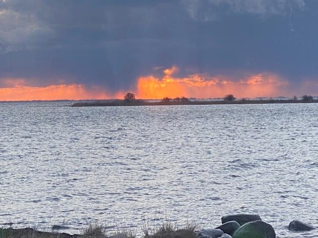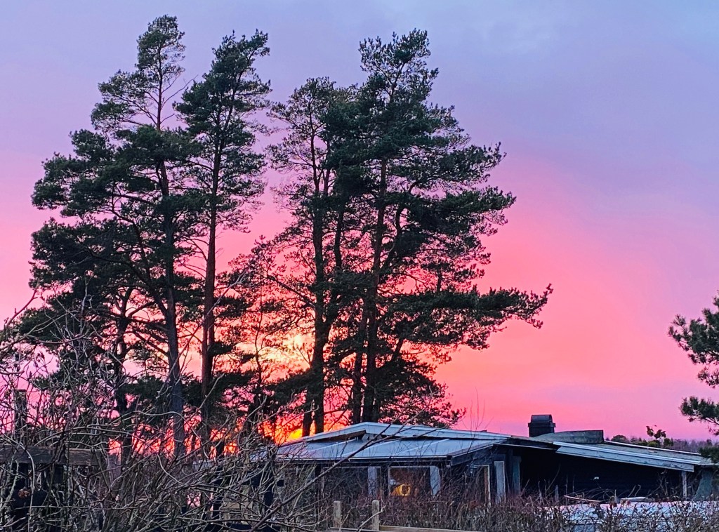 Det började visserligen vackert, om än något olycksbådande. Bilden ovan tog jag klockan 06:10. Sedan spårade det ut. Nu är en grad varmt, men det det känns som minus 6 med vindbyar kring 17 sekundmeter från nordväst.